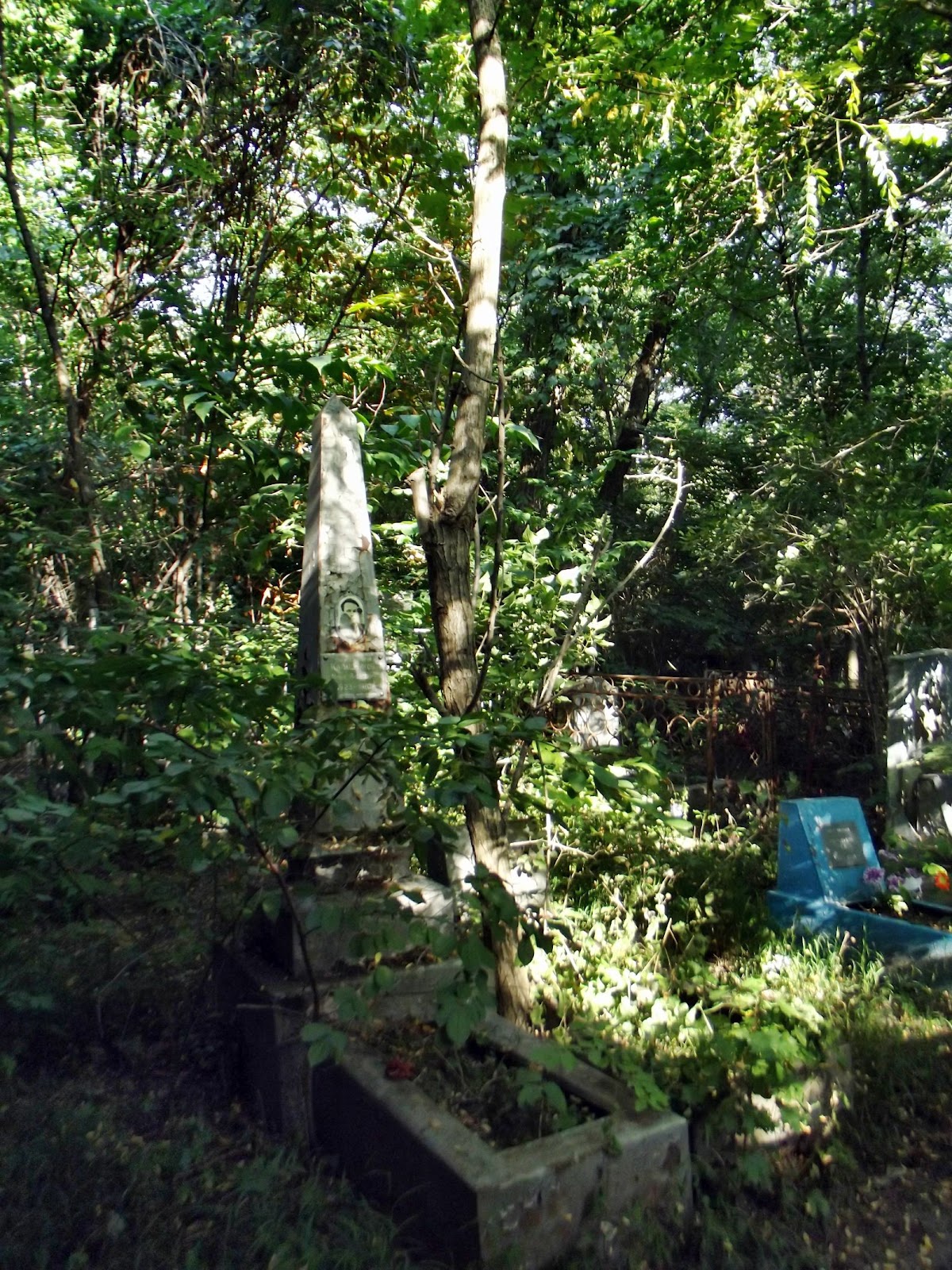 Останки очень странного надгробия в виде домика. Таких несколько по кладбищу. Странная конструкция.