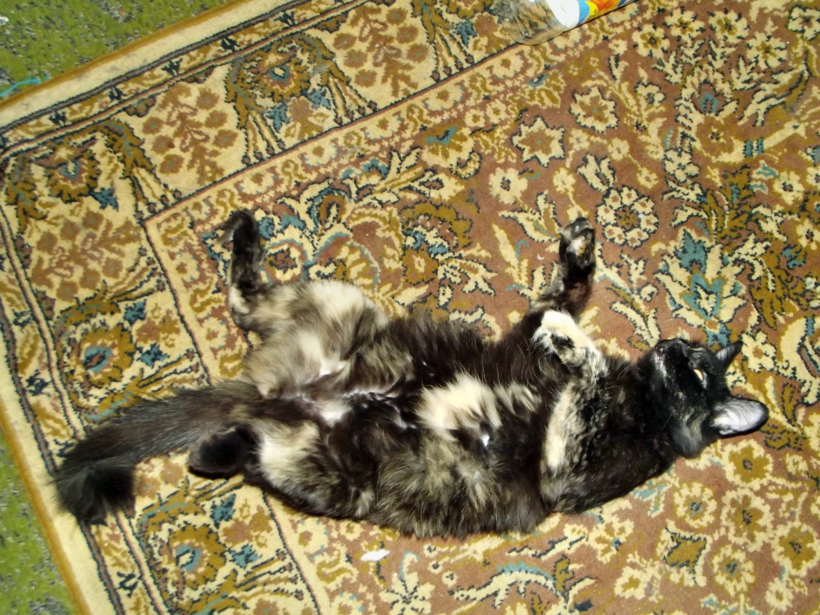 Это Тёсьена, в просторечье Тёська. Она же Мордохвост, она же Нагломорда, она же А-Ну-Куда-Полезла!, она же Выхухоль. Остальное — по обстоятельствам. Моя подруга Оля называет ее Пластилиновая ворона. Как положишь — так и лежит, как лапки разложишь — так и останутся. Смысл существования — быть облюбленой, поглаженой и почуханой со всех сторон.